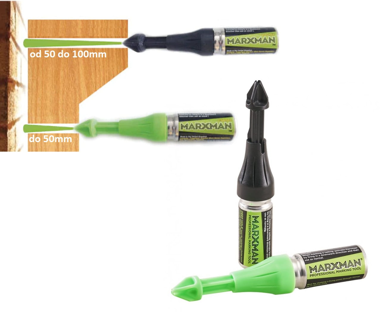 2x Profesjonalny Marker do znakowania otworów 50mm + 100mm Marxman Zielony