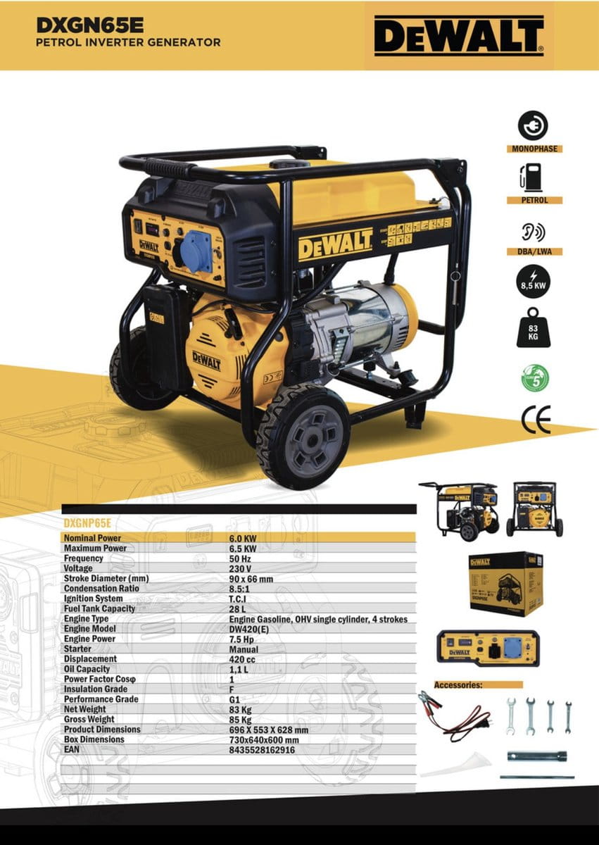 DeWalt DXGNP65E – profesjonalny agregat prądotwórczy do zastosowań budowlanych i serwisowych