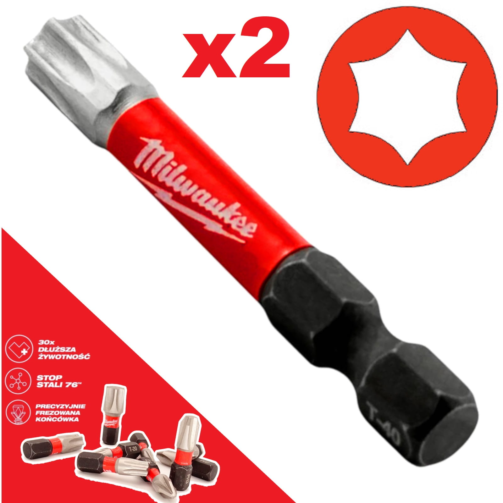 Milwaukee bity udarowe TORX TX40 50 mm 1/4" – końcówki wkrętarskie (2 szt.)