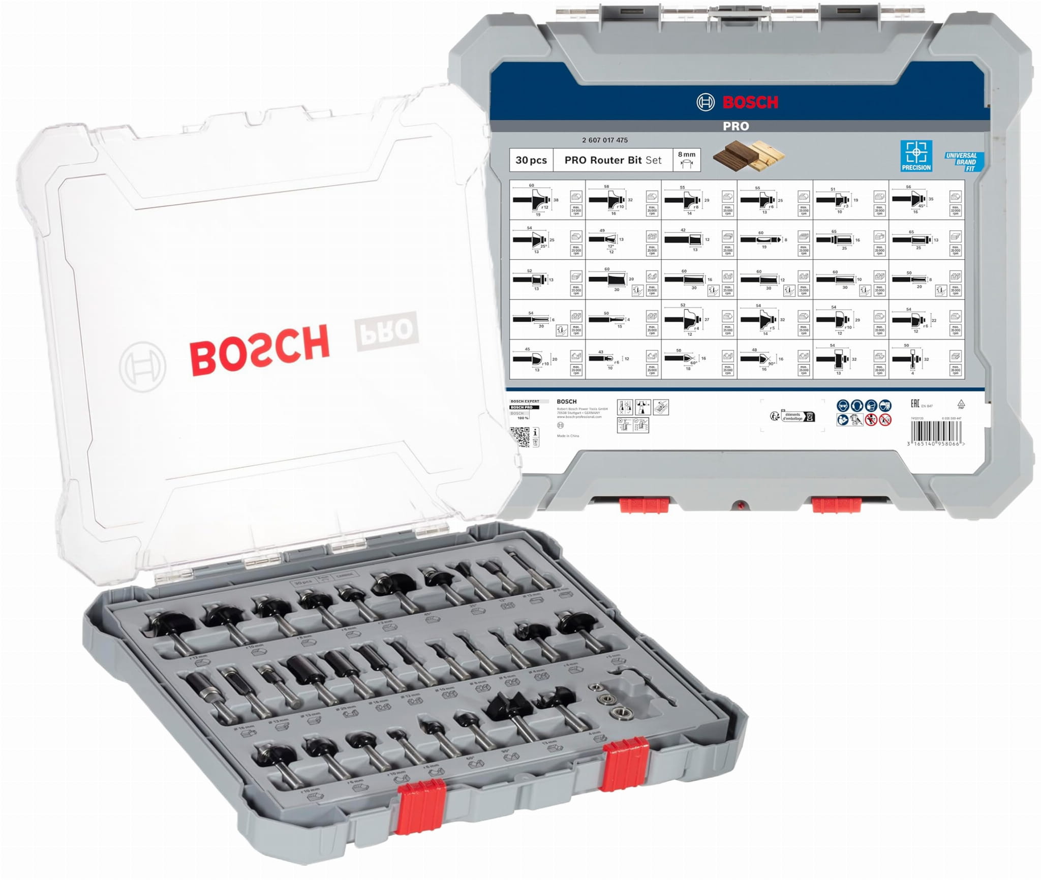 Bosch 2607017475 Profesjonalny Zestaw 30 frezów mieszanych do drewna 8mm