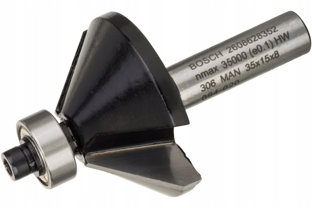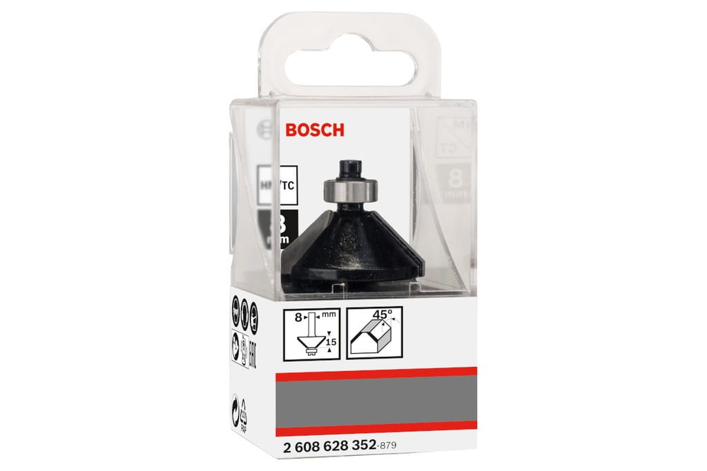 Bosch 2608628352 Frez kątowy do fazowania 45° – czyste krawędzie i szybkie wykończenie drewna (8 mm, L 14,7 mm)