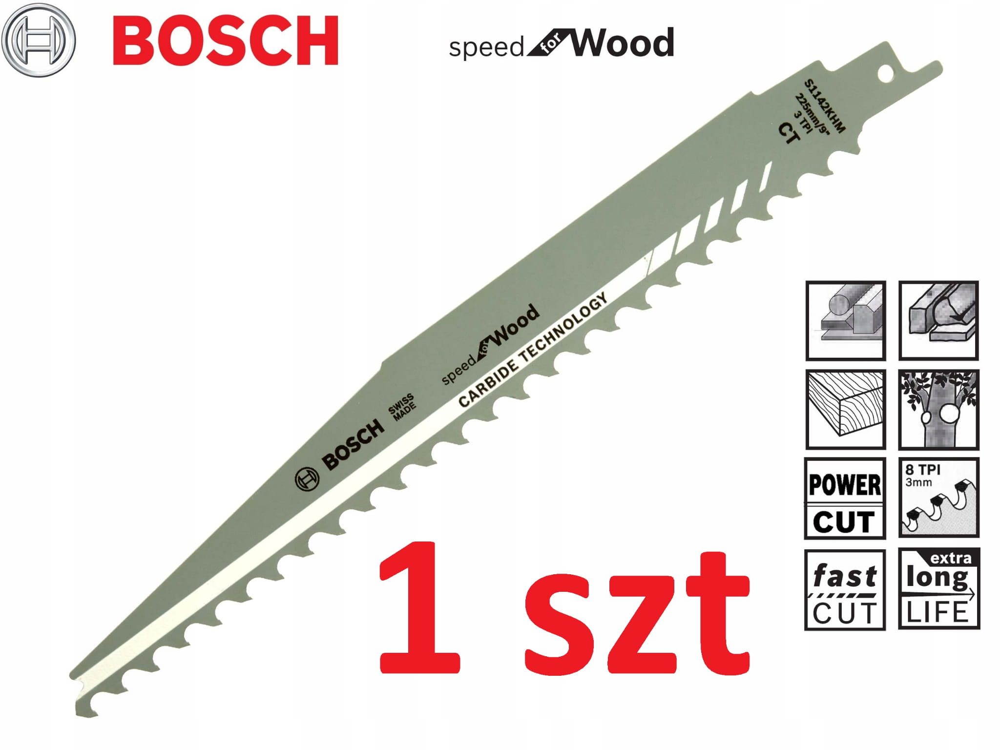Bosch S1142KHM Brzeszczot do Drewna 225mm Carbide