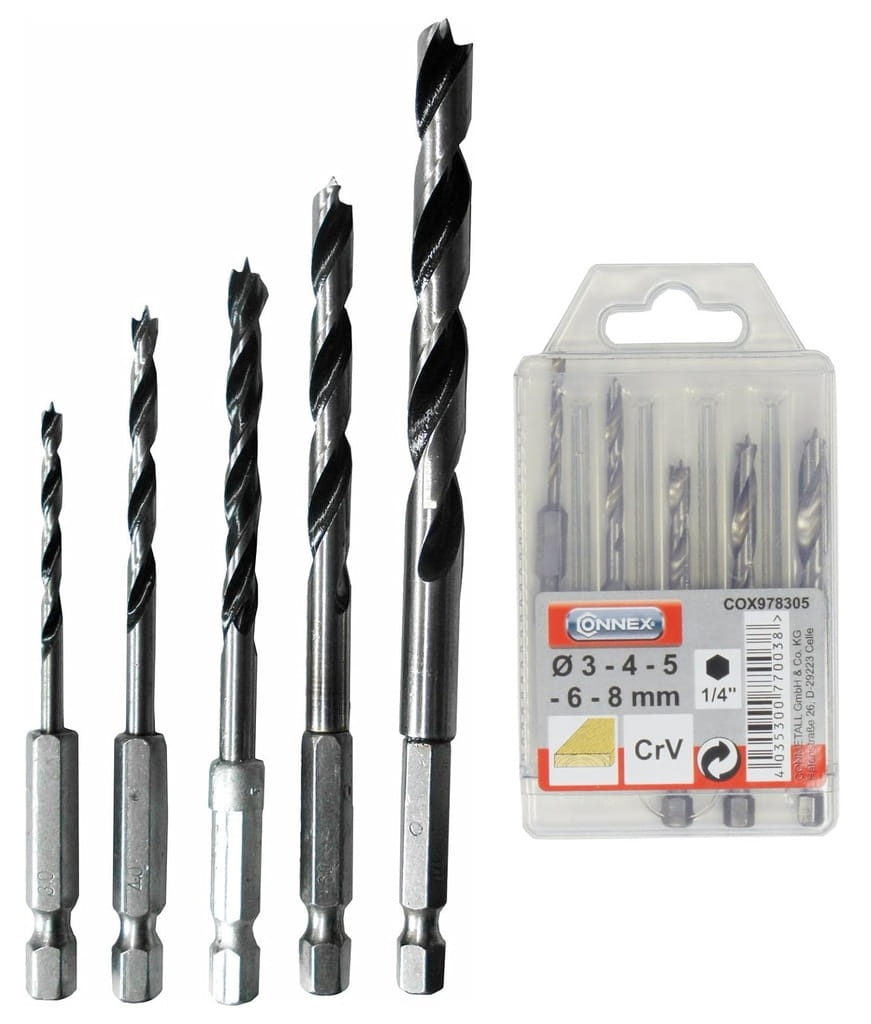 Connex COX978305 Zestaw Wierteł krętych do drewna 3-8mm 5szt 1/4 HEX