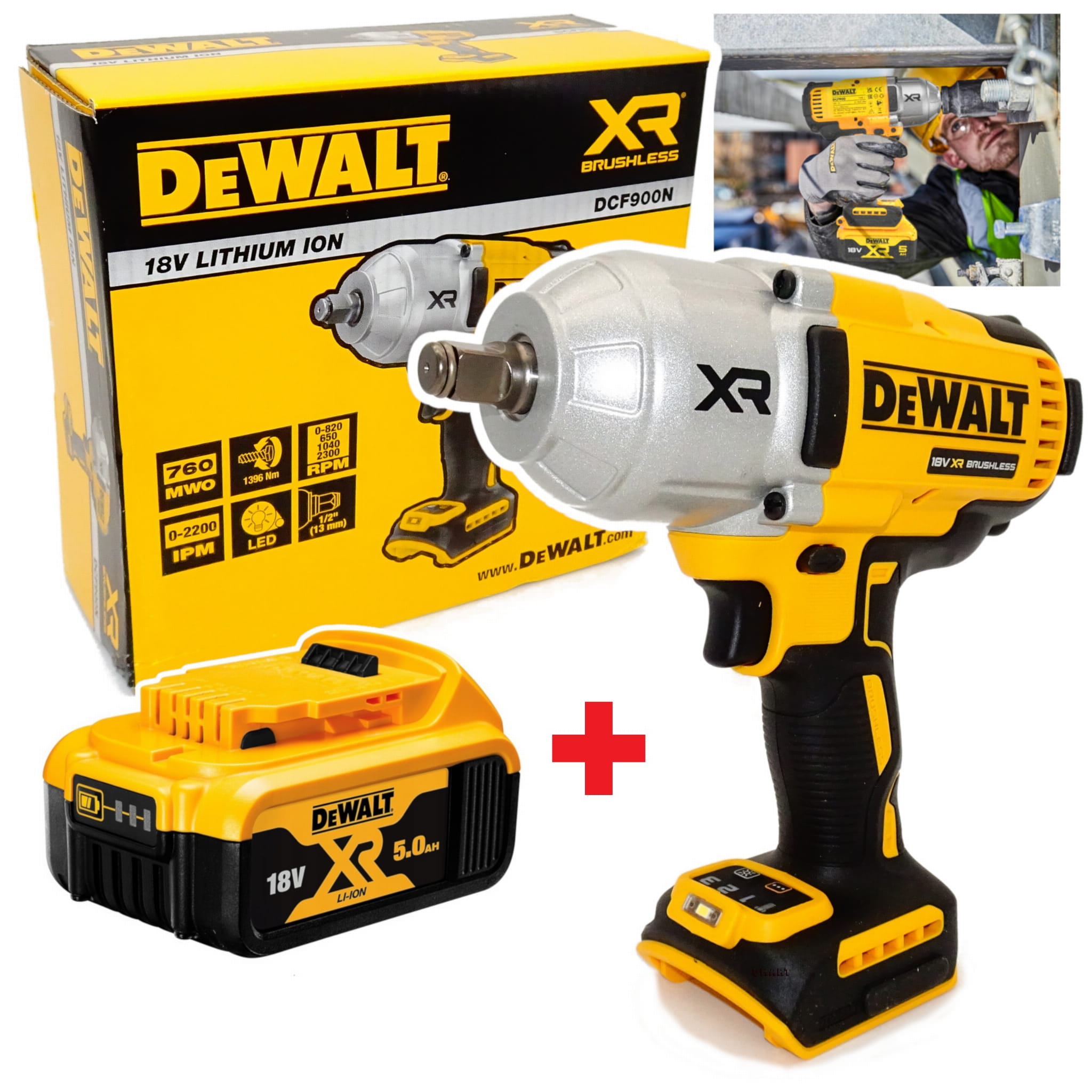 DeWALT DCF900N – klucz udarowy 1/2” 18V XR (1×5.0Ah) – wersja bez walizki, biały karton