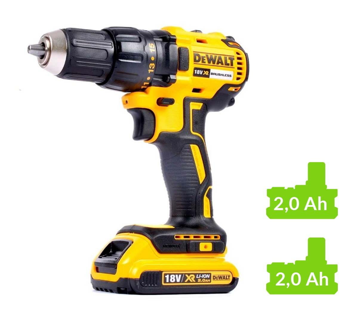 2 akumulatory 2,0Ah XR Li-Ion DCB183 – niska waga, wygodna praca przez cały dzień,