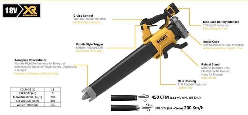 Dmuchawa 18V 200km/h DeWalt DCMBL562P1 1x 5AH do Liści Warsztatu Budowlana