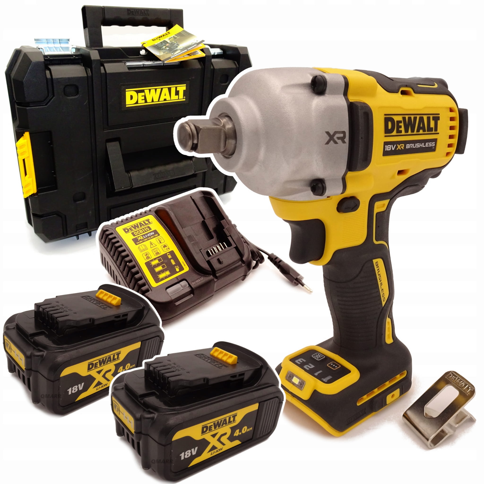 Dostajesz klucz DCF891N (BODY), 2× akumulator 4.0Ah, szybką ładowarkę 4A oraz walizkę TSTAK II – czyli zestaw gotowy do pracy w terenie i wygodny w transporcie. Do tego metalowy zaczep do paska, który realnie pomaga w pracy na montażu.