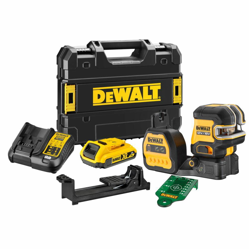 DeWalt DCE825D1G18 to praktyczny, profesjonalny laser z zieloną wiązką, stworzony do precyzyjnego wyznaczania linii podczas montażu i prac wykończeniowych. Zielone światło ułatwia celowanie i poprawia czytelność w wielu warunkach, dzięki czemu praca idzie szybciej i pewniej. To kompletny zestaw gotowy do działania: otrzymujesz laser z akumulatorem DCB183 2,0Ah, ładowarką DCB112 oraz pudełkiem kompatybilnym z systemem TSTAK.