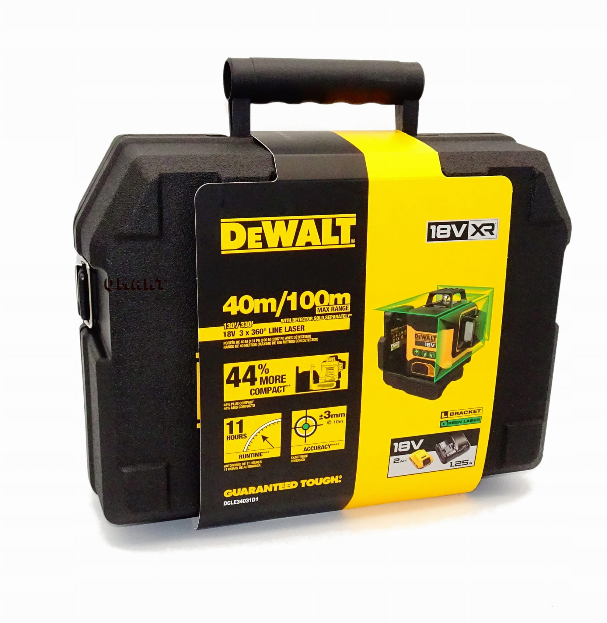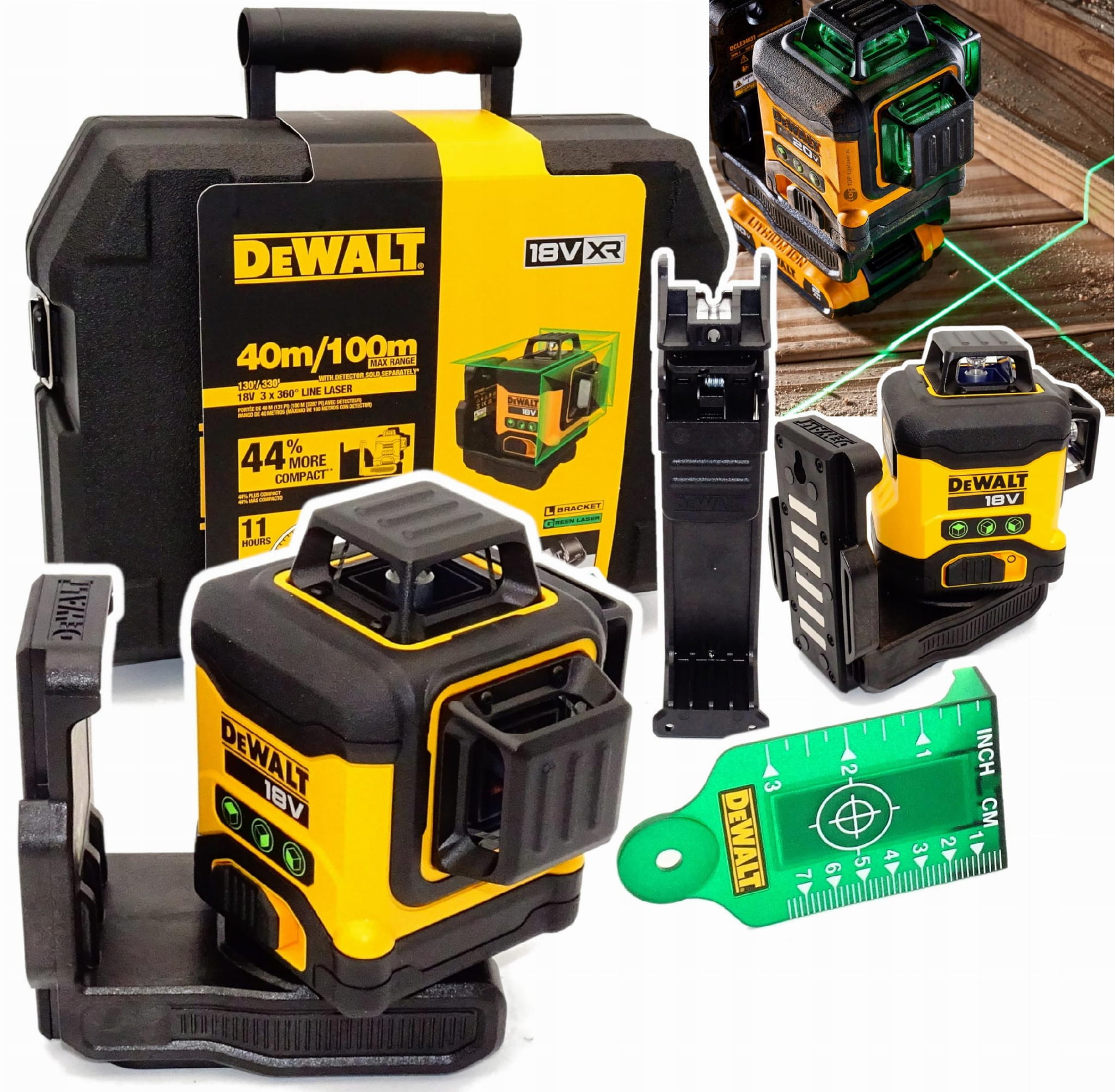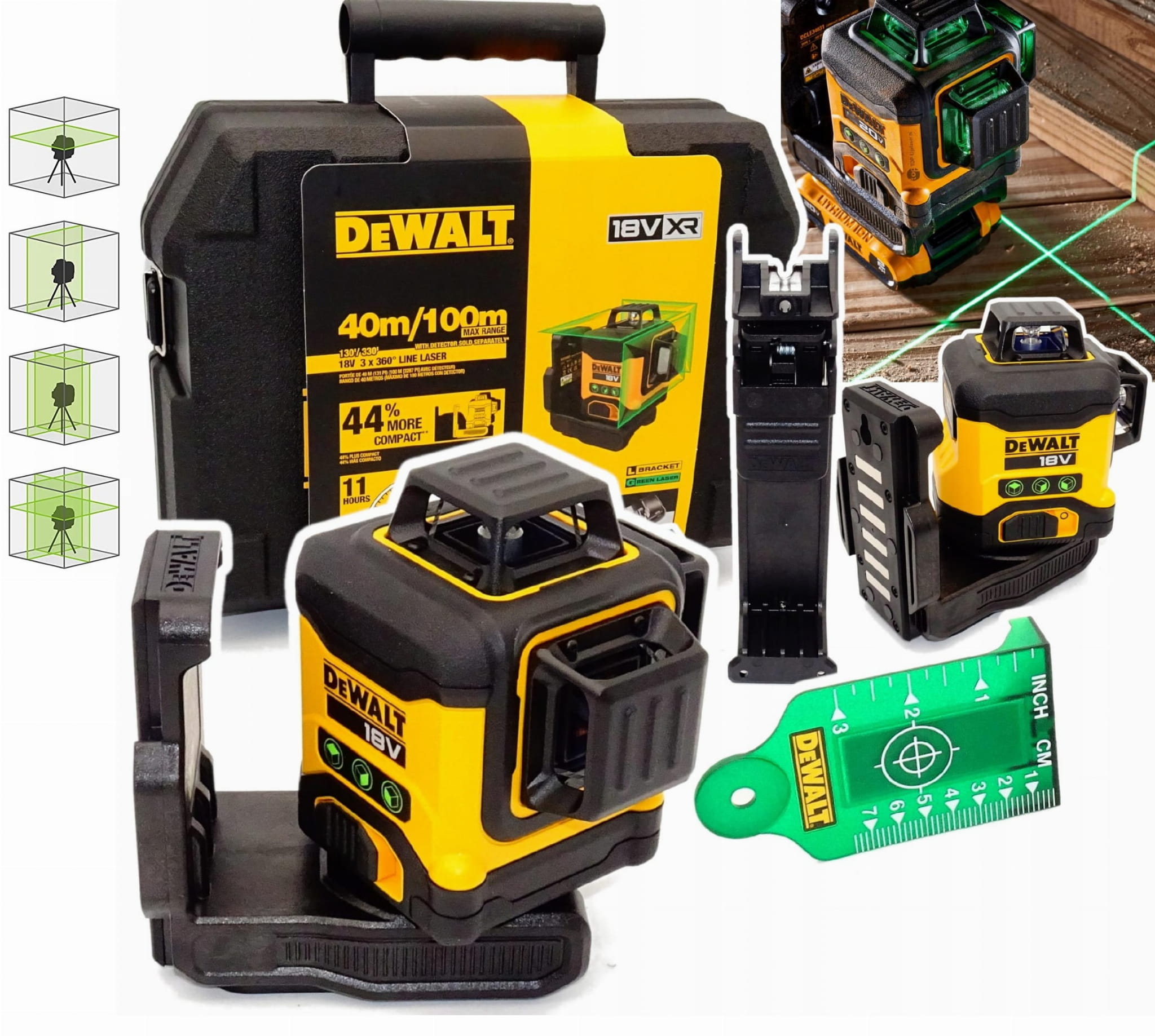 DCLE34031 Zielony laser 3×360° 18V XR 40 m – zestaw z akumulatorem i walizką