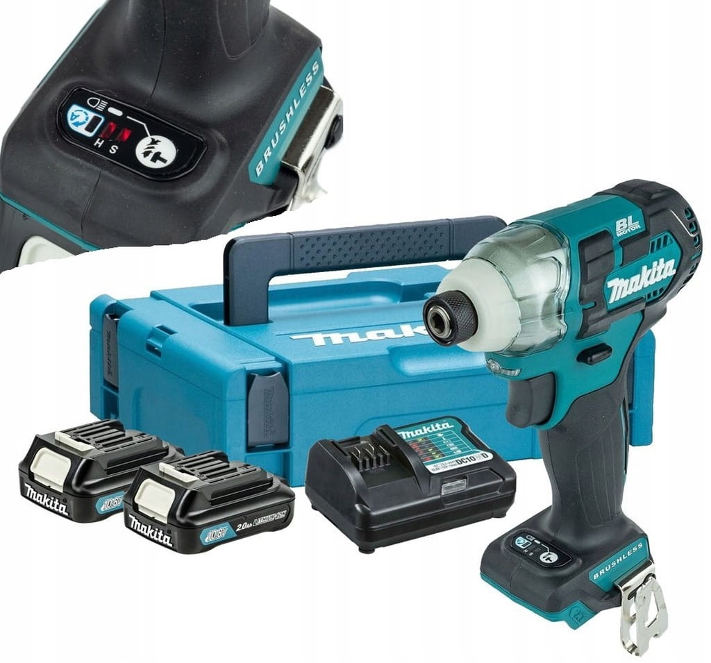 Makita TD111DSAE – zakrętarka udarowa 10,8V/12V CXT w zestawie (2×2,0Ah + ładowarka + MAKPAC) – szybkie wkręcanie w kompaktowej formie