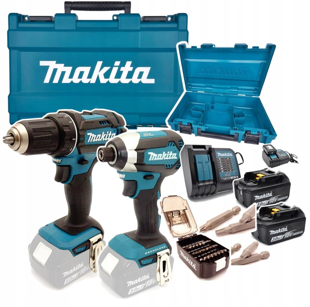 W komplecie masz wszystko, żeby ruszyć od razu: 2 akumulatory 3,0Ah, ładowarkę i mocną walizkę. Do tego dorzucony jest praktyczny GRATIS – zestaw bitów Makita B-68323 (21 szt., długie 50 mm) w kompaktowym pudełku w kształcie baterii.