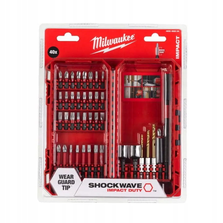 Milwaukee 4932492004 – zestaw bitów udarowych SHOCKWAVE™ z uchwytami, nasadkami i wiertłami (40 el.)