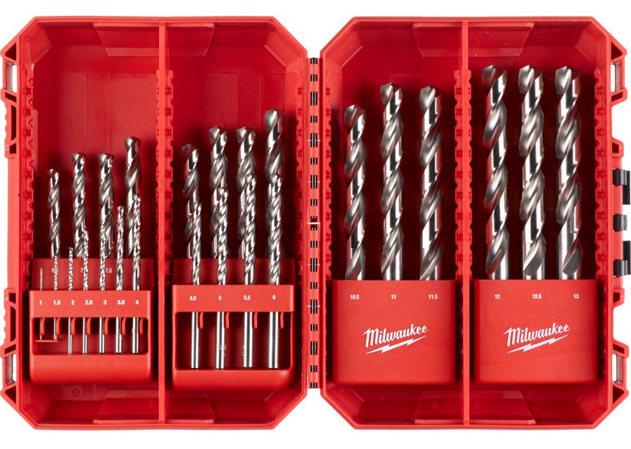 Milwaukee 4932493870 to kompletny zestaw wierteł do metalu HSS-G Thunderweb w zakresie 1–13 mm, w krokach co 0,5 mm. Jeden komplet, który ogarnia większość typowych średnic na budowie, w warsztacie i przy serwisie. Idealny dla ekip, które chcą mieć porządek w osprzęcie, pełne pokrycie średnic i pewność, że wiertło „da radę” nawet przy cięższej pracy w stali.