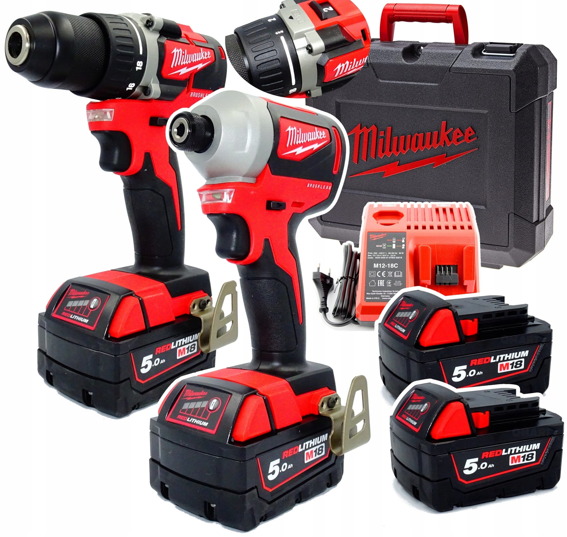 Milwaukee M18 CBLPP2B-502C – zestaw 2 narzędzi M18: wiertarko-wkrętarka + zakrętarka udarowa (2x 5,0Ah)