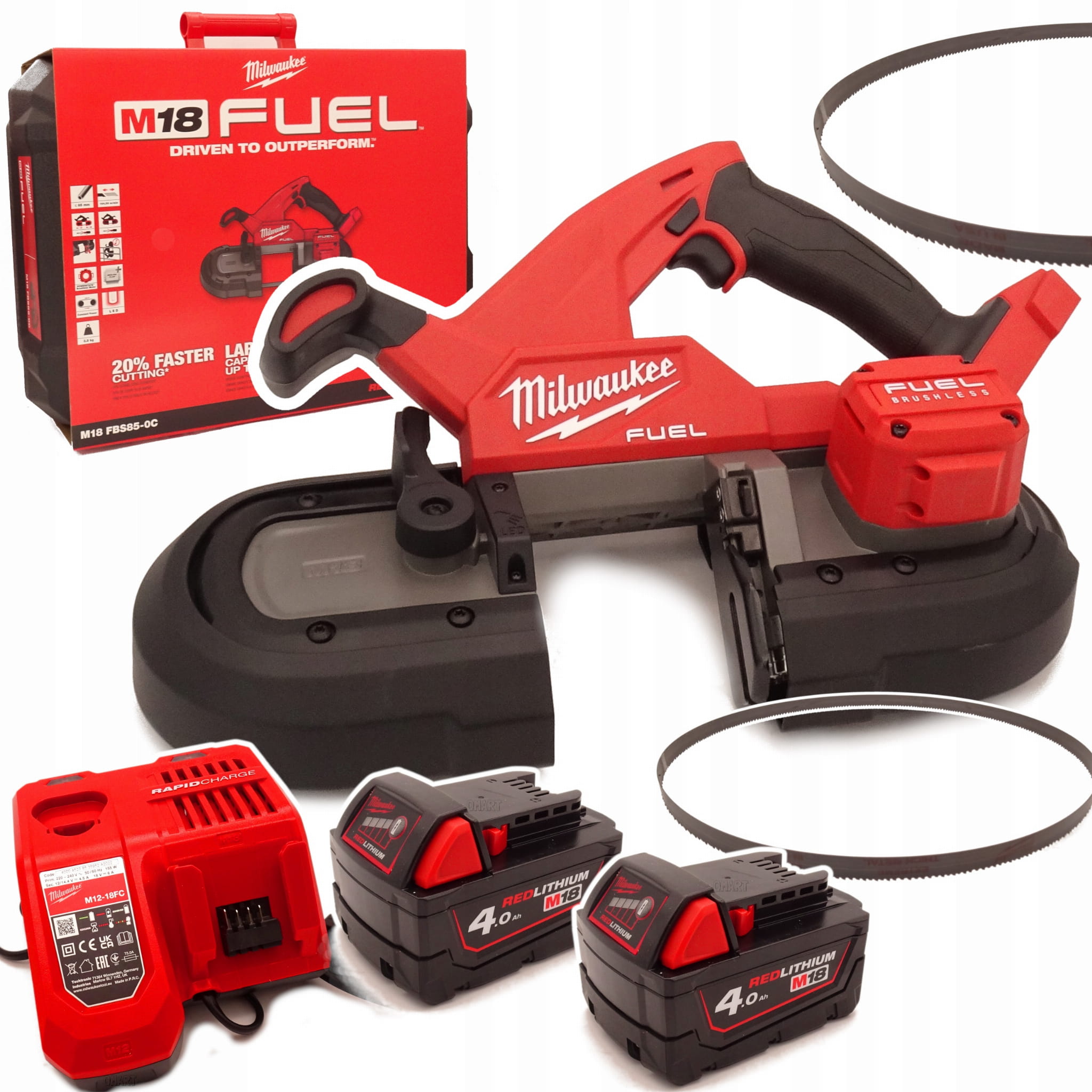 Milwaukee M18 FBS85-402C – pilarka taśmowa M18 + 2×4,0Ah + szybka ładowarka + taśma Premium 14 TPI + osłony + walizka