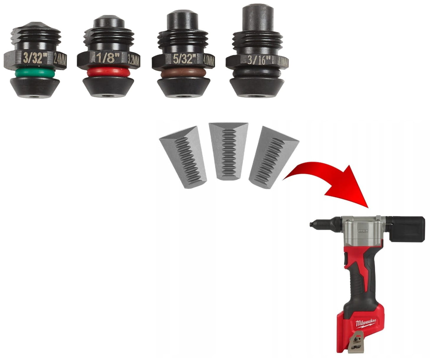 Zestaw przeznaczony do nitownicy Milwaukee M12 BPRT (M12 Rivet Tool / model 2550).