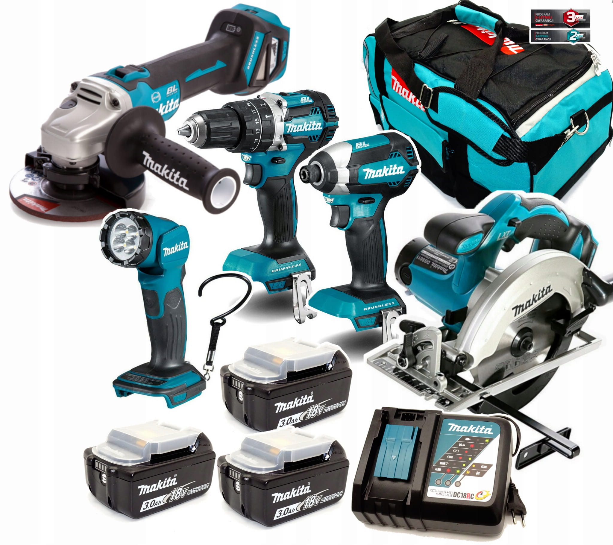 Zestaw zawiera – Makita 18V DGA513 / DHS610 / DTD153 / DHP484PF