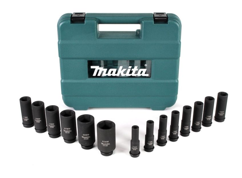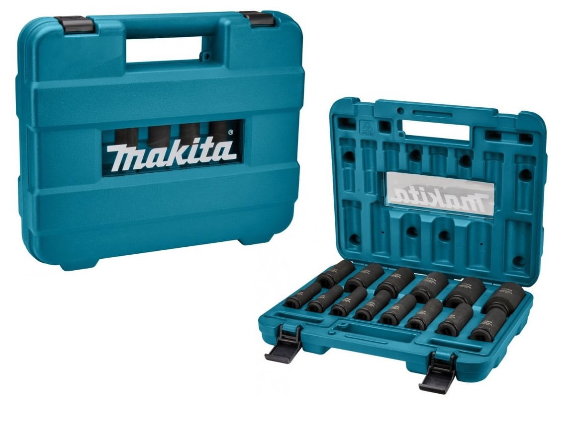 Makita B-52308 – zestaw długich nasadek udarowych 1/2" 10–32 mm (81 mm) CR-MO | 14 szt. w walizce