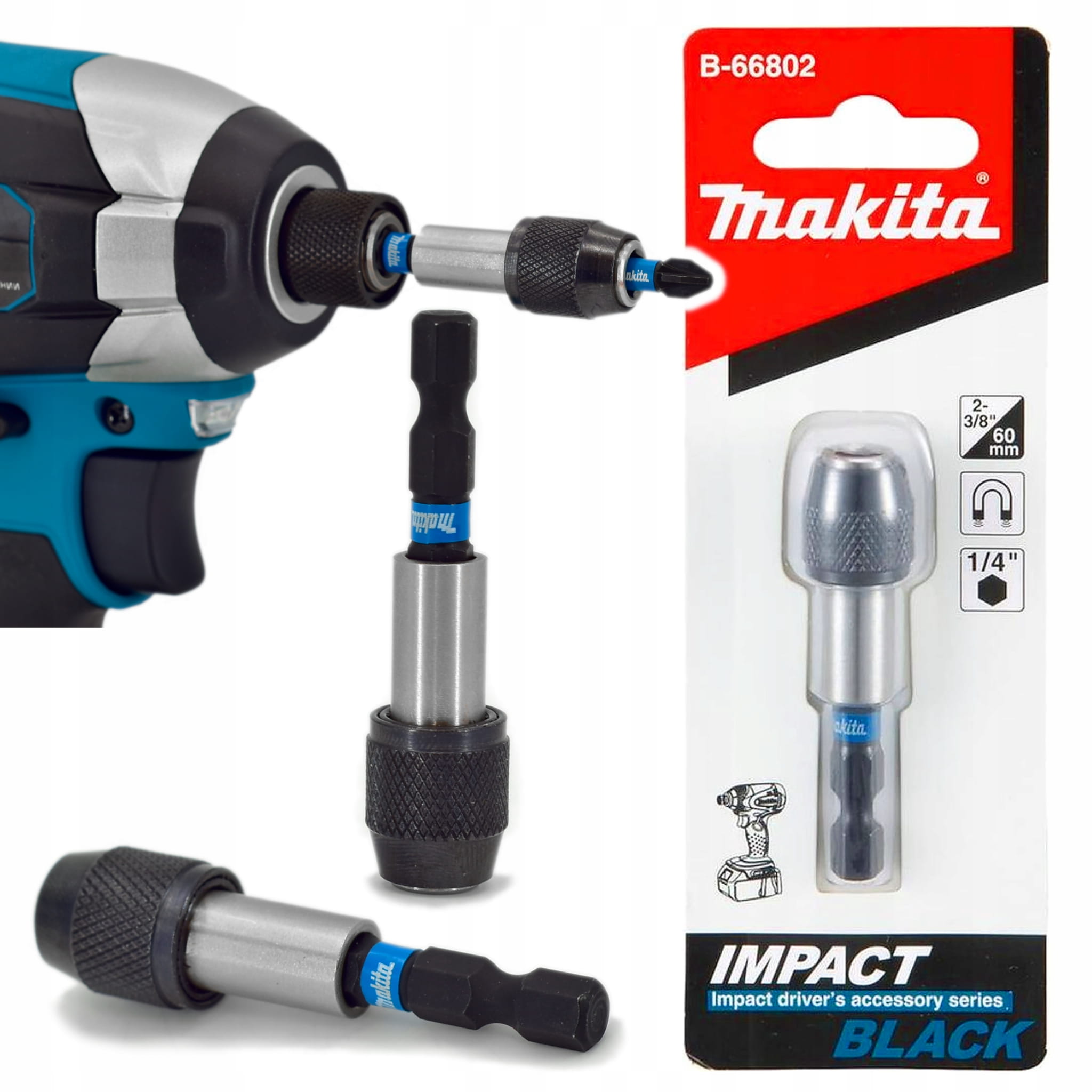 Makita B-66802 – Uchwyt magnetyczny z blokadą do bitów 60 mm (Impact Black) 1/4" HEX