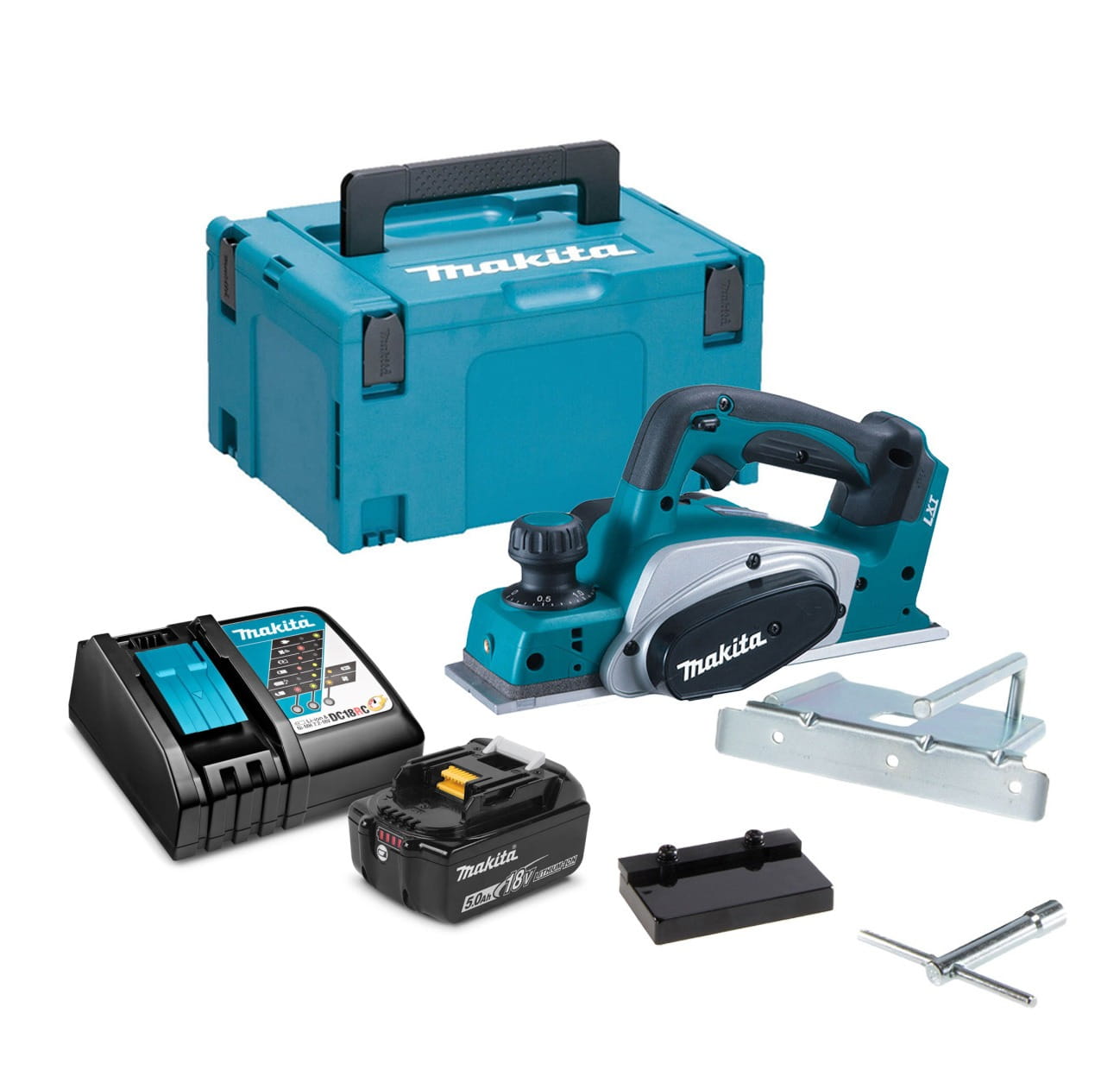 Makita DKP180RTJ – strug akumulatorowy 18V LXT 82 mm + 2×5,0Ah + MAKPAC