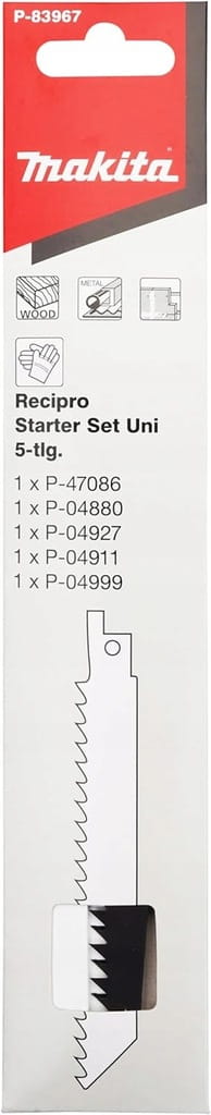 Makita P-83967 to uniwersalny zestaw brzeszczotów, który pozwala szybko dopasować osprzęt do aktualnego zadania – od cięcia drewna po pracę w metalu. To świetne rozwiązanie dla osób, które używają piły szablastej w różnych sytuacjach: remont, montaż, prace instalacyjne czy rozbiórki. Zamiast dobierać brzeszczoty pojedynczo, masz pod ręką komplet do najczęstszych zastosowań.