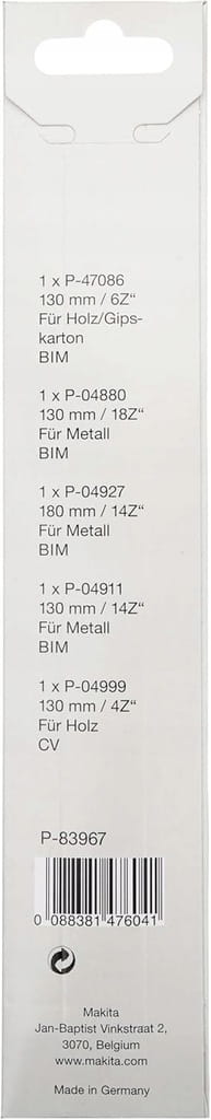 Makita P-83967 Zestaw brzeszczotów do piły szablastej – drewno i metal w jednym komplecie (5 szt.)