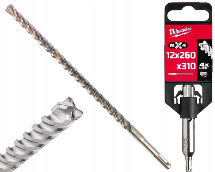 - 1× wiertło Milwaukee SDS-Plus MX4 12×260/310 mm (4932352034)