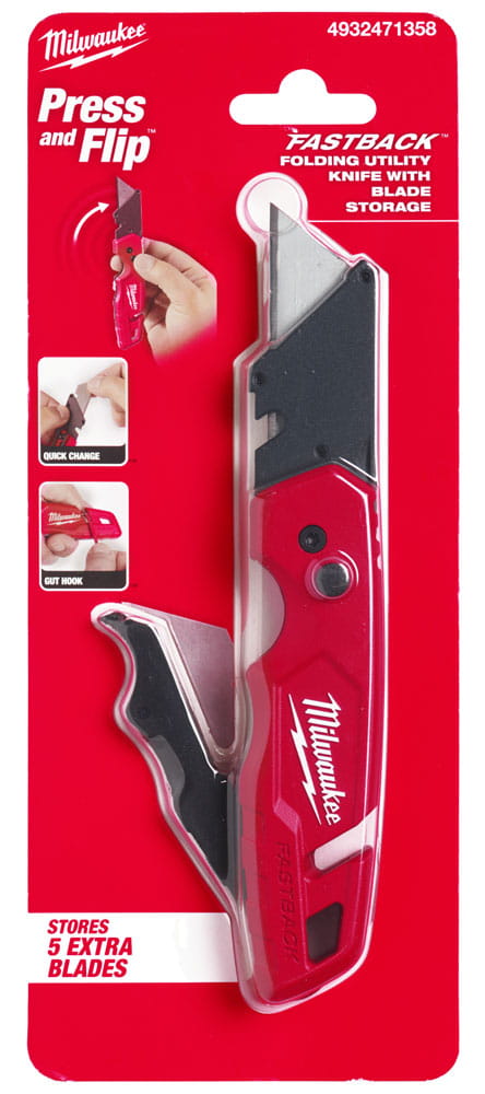 Milwaukee FASTBACK 4932471358 – nożyk z metalowym uchwytem i schowkiem na ostrza – szybkie cięcie zawsze pod ręką