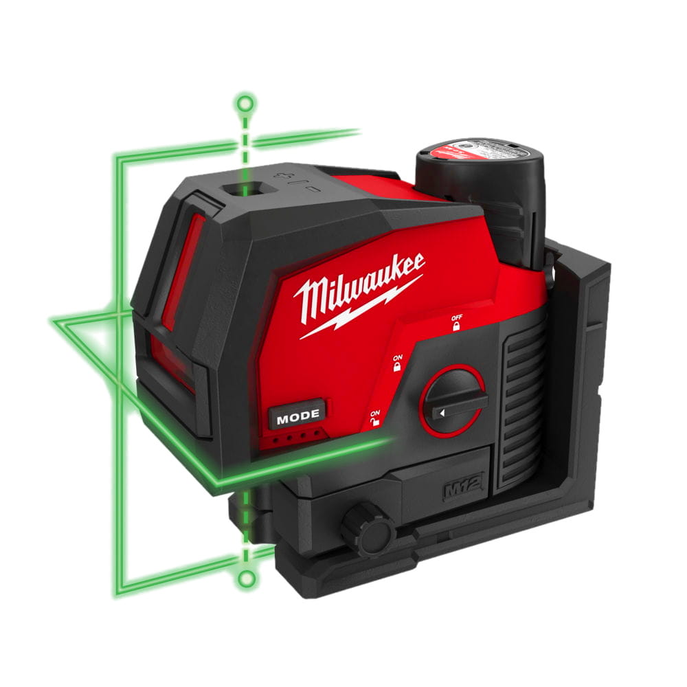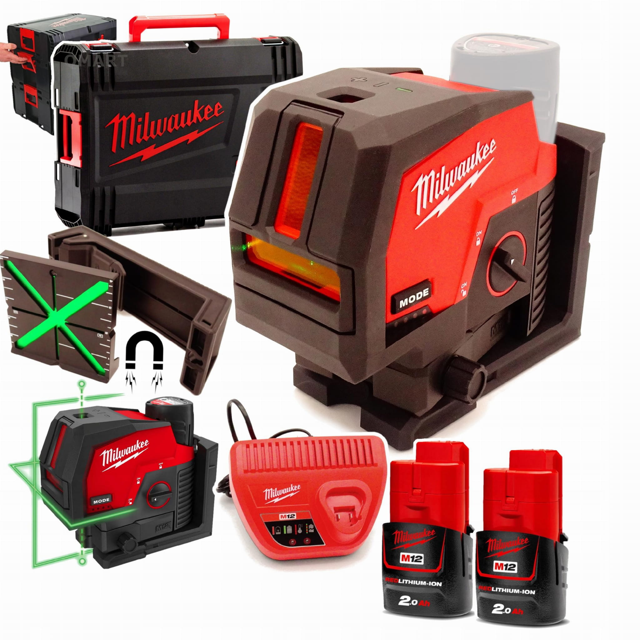 Milwaukee M12 CLLP-202C Laser zielony krzyżowy liniowo-punktowy 38m Zestaw 2x2Ah