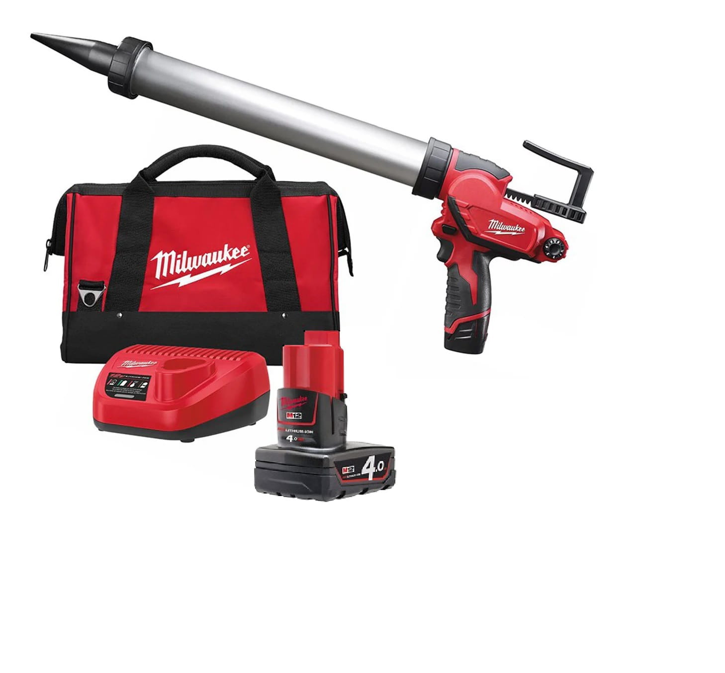 Milwaukee M12 PCG/600A-401B Pistolet do kartuszy 12V – równe dozowanie i wygodna praca bez wysiłku (1×4,0Ah + ładowarka)