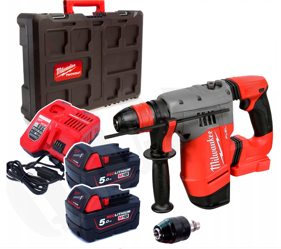 Milwaukee M18 CHPX-502X – młotowiertarka SDS+ 18V z 2x 5,0Ah + szybka ładowarka + walizka