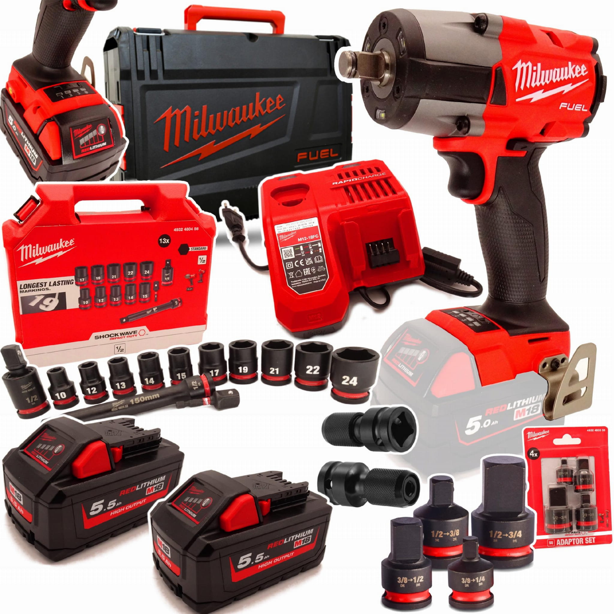 Milwaukee M18 FMTIW2F12-552X – klucz udarowy 1/2" M18 FUEL + 2×5,5Ah HIGH OUTPUT + szybka ładowarka + HD1