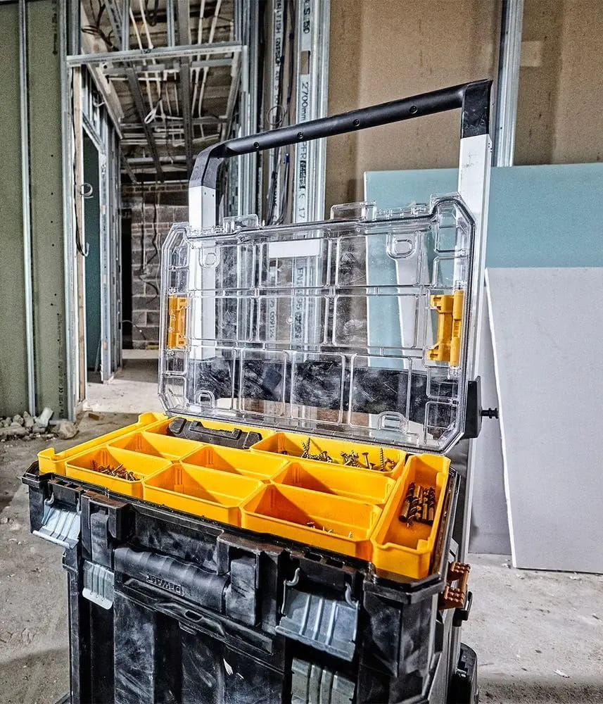 DeWALT DWST82968-1 TSTAK 2.0 – skrzynia narzędziowa z organizerami TSTAK V do porządku „na budowie i w aucie”