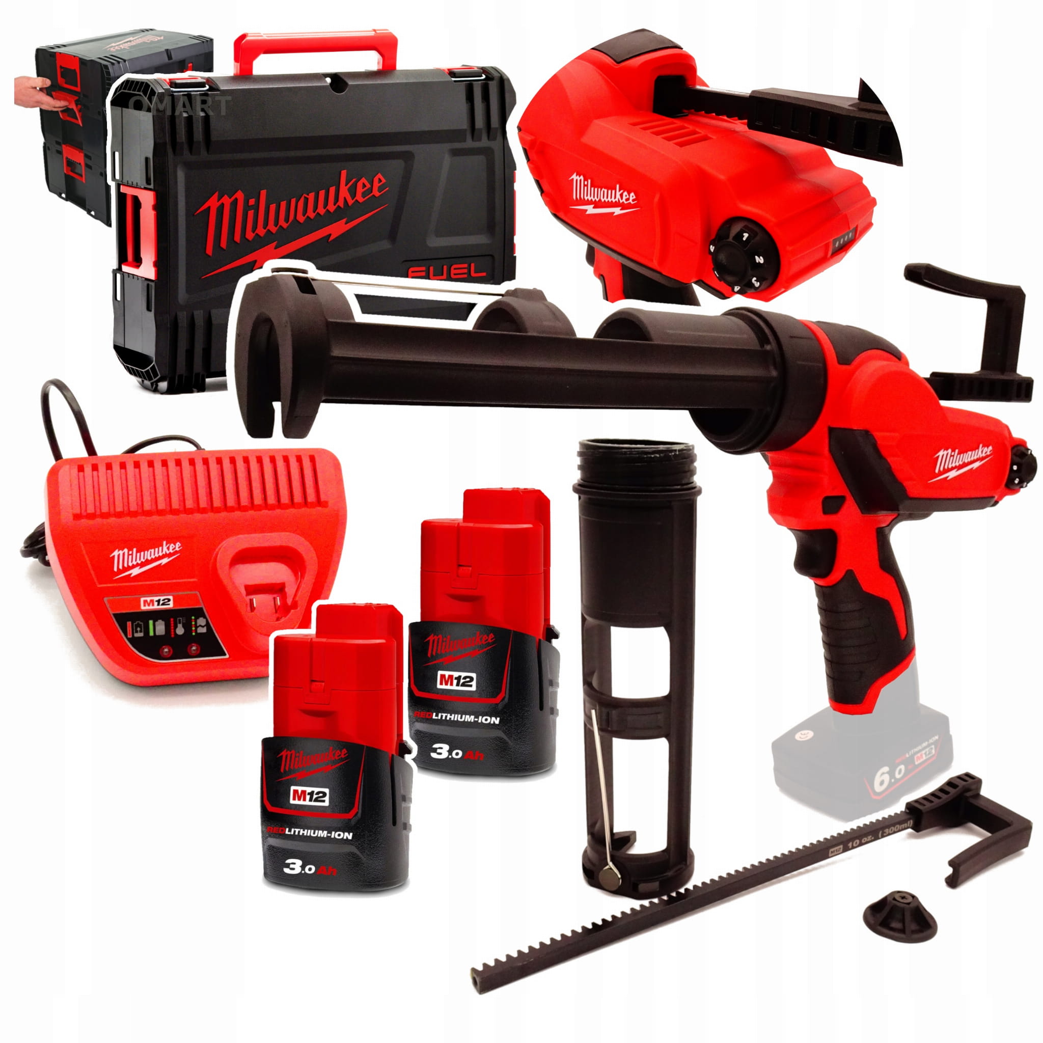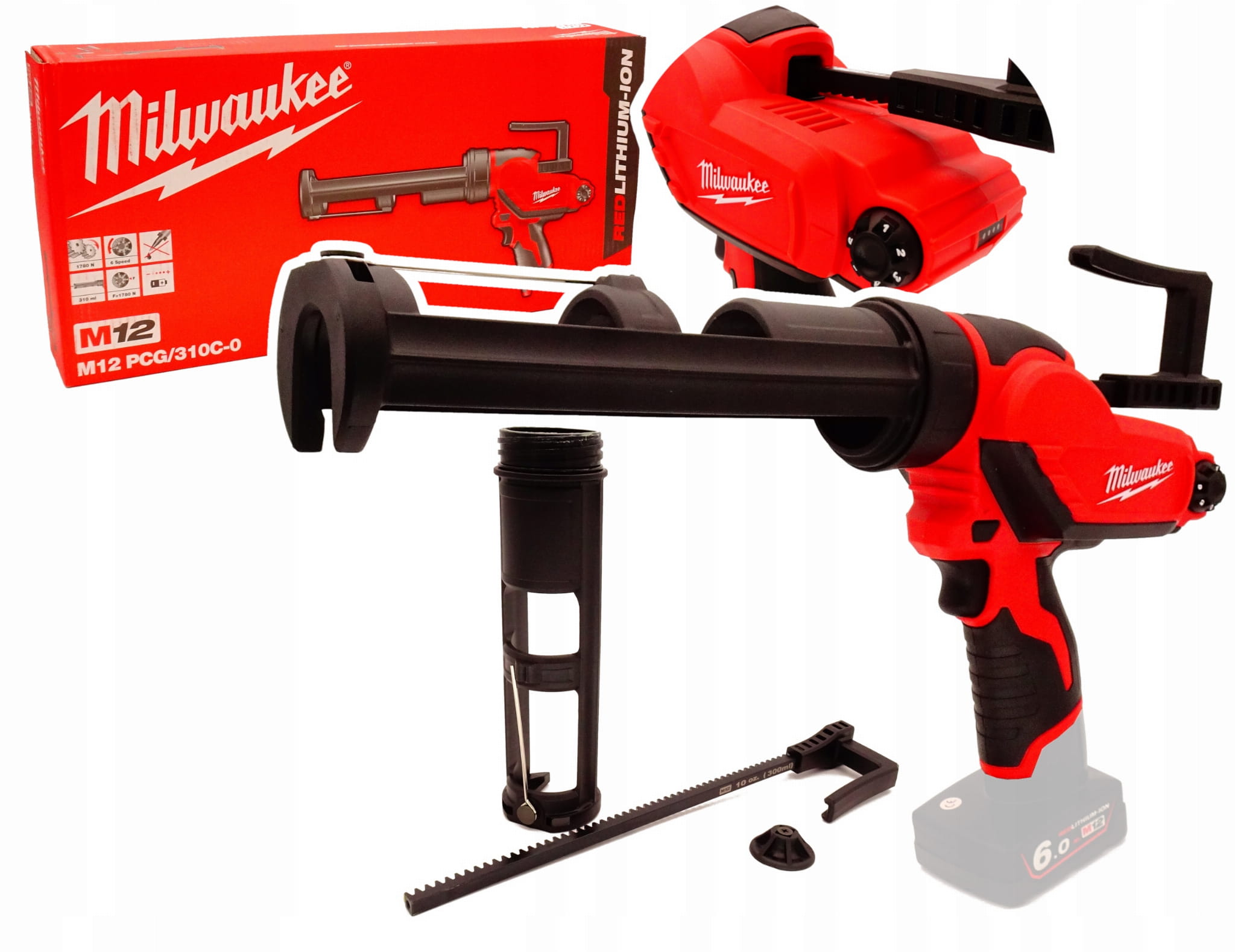 Milwaukee M12 PCG 310C-302X – pistolet do silikonu i kleju (zestaw 2x 3.0Ah + ładowarka + walizka HD1)