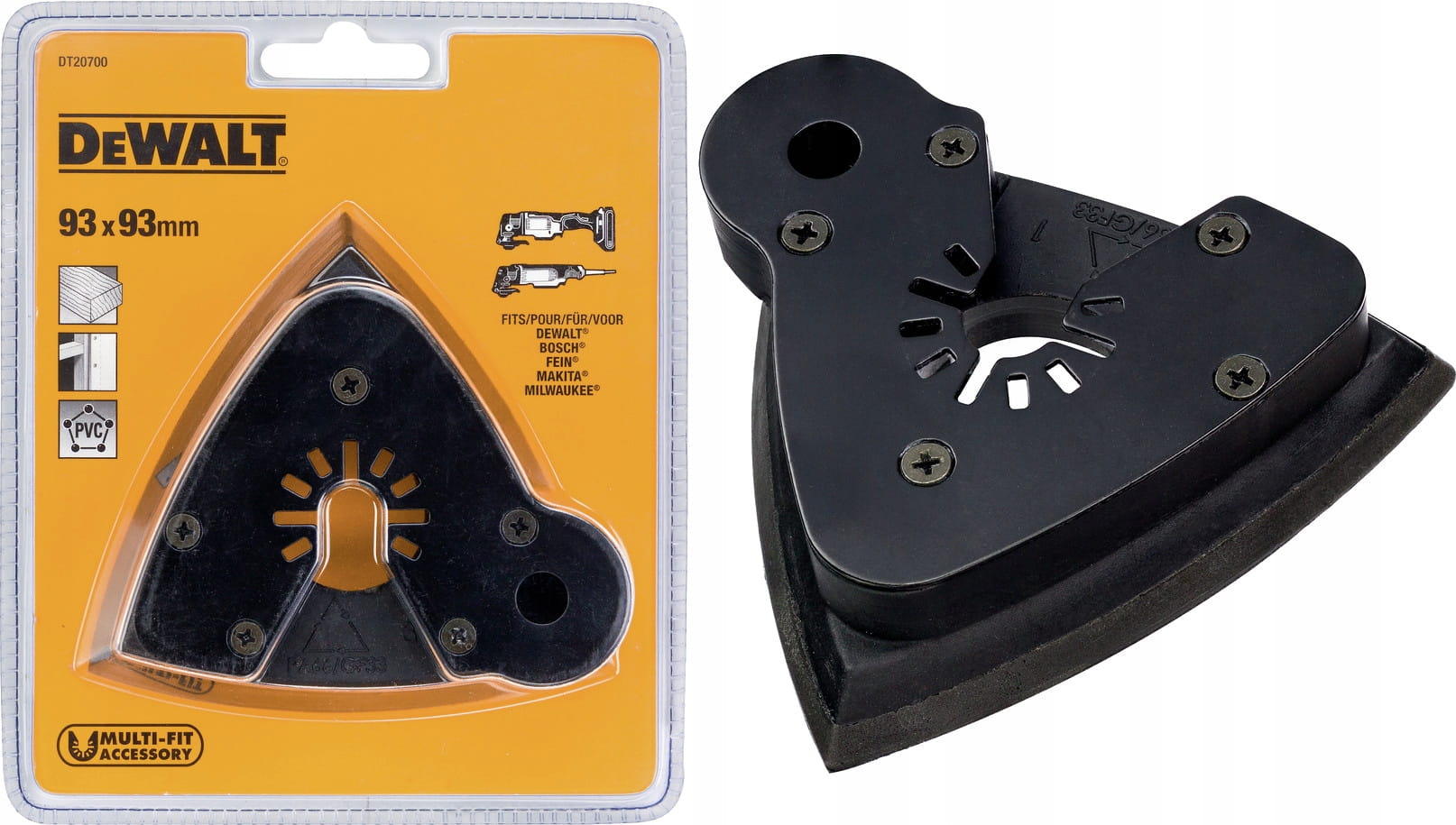DeWALT DT20700 – trójkątna stopa szlifierska Delta 93×93 mm do Multi-Tool – precyzyjne szlifowanie w narożnikach i trudno dostępnych miejscach