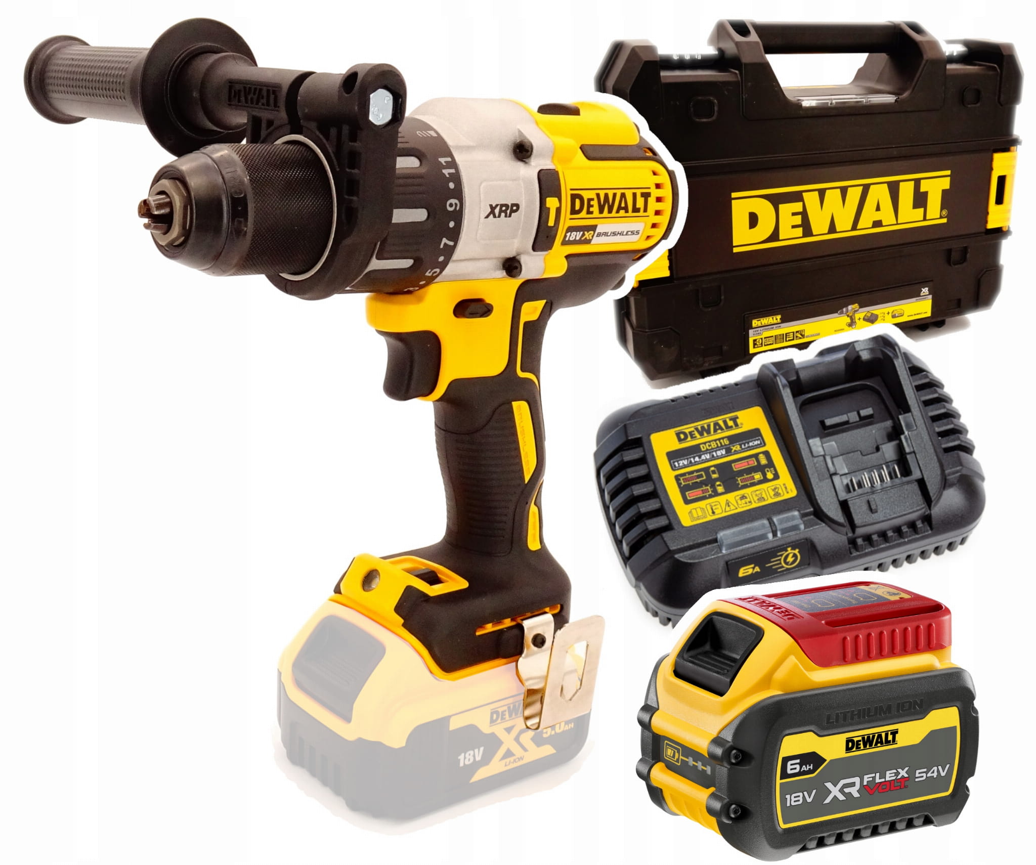 DeWALT DCD996T1 to zestaw dla tych, którzy oczekują wysokiej wydajności w montażu i wierceniu – także w twardszych materiałach. W komplecie otrzymujesz wiertarko-wkrętarkę udarową DCD996N, mocny akumulator FLEXVOLT DCB546 6.0Ah (18V/54V), szybką ładowarkę DCB115 oraz walizkę systemową TSTAK. Do pracy w trudnych warunkach dostajesz również rączkę boczną (lepsza kontrola i bezpieczeństwo) oraz zaczep do paska, który ułatwia pracę na drabinie i w terenie.
