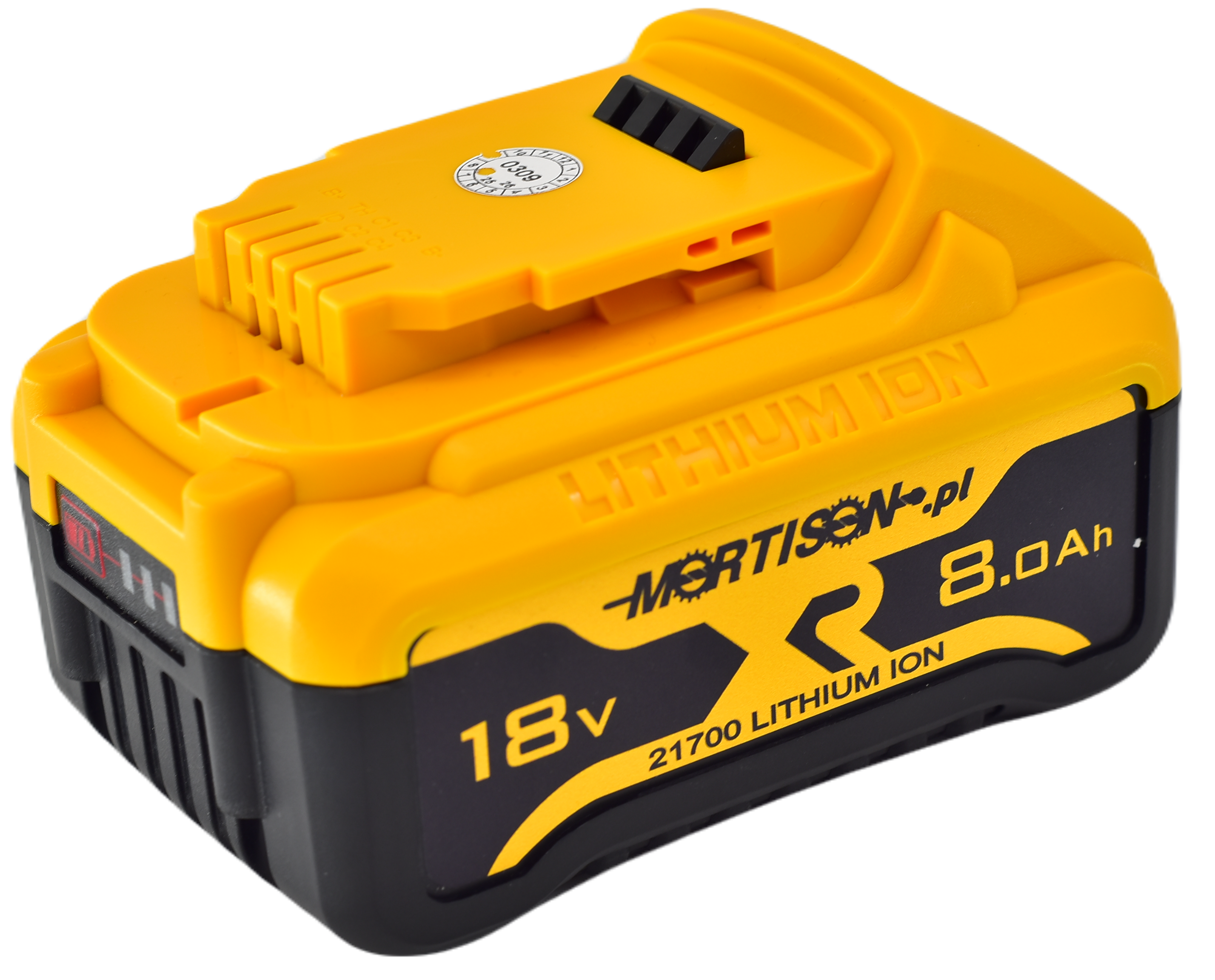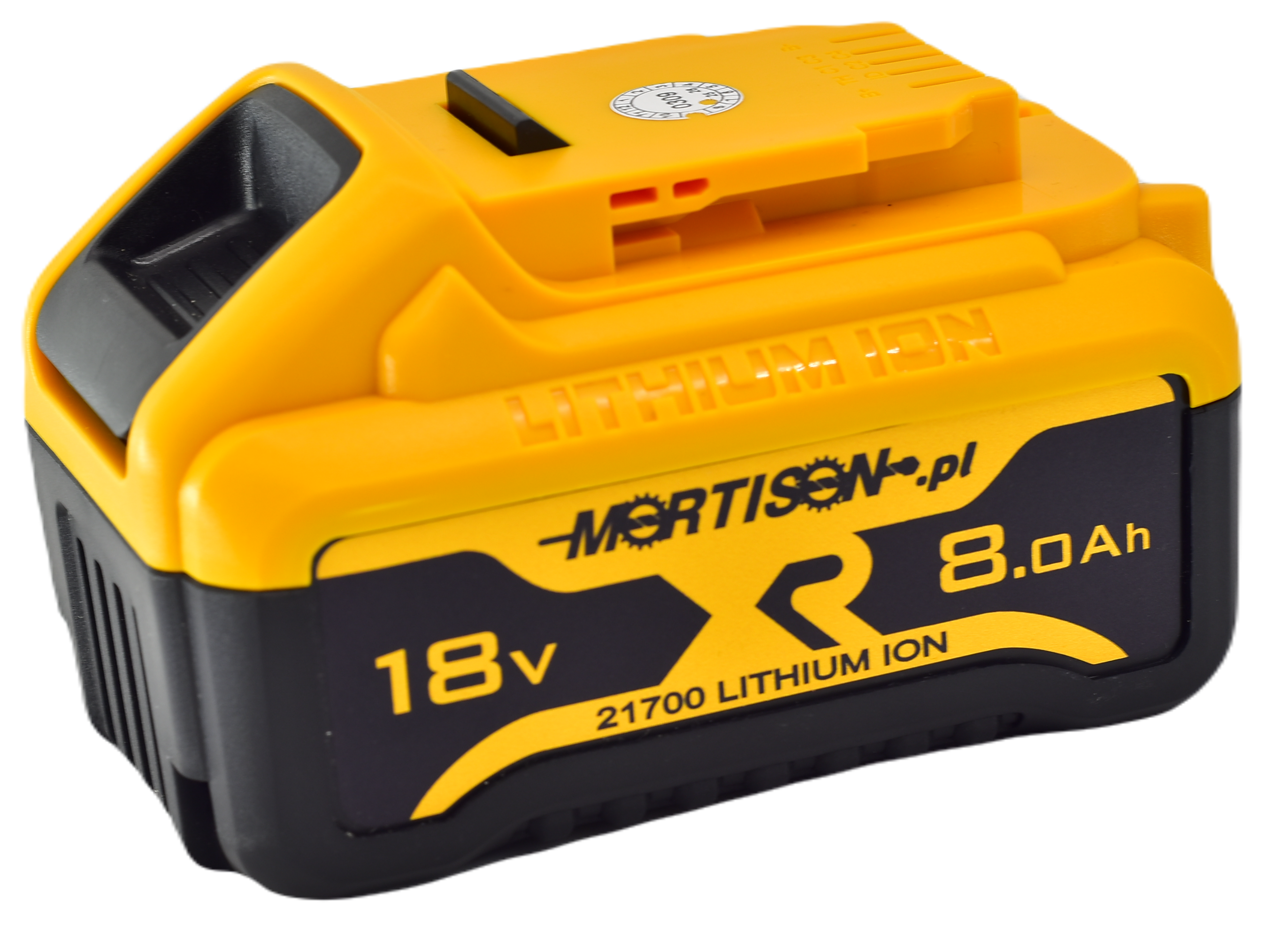 Akumulator Mortison Li-Ion 18V 8,0Ah to zamiennik przeznaczony do narzędzi z systemu DeWALT XR 18V. Jeśli chcesz wydłużyć czas pracy na jednym ładowaniu i ograniczyć częste zmiany baterii, wersja 8Ah jest praktycznym wyborem – szczególnie przy narzędziach, które „zjadają” energię: szlifierkach, odkurzaczach, pilarkach czy intensywnych montażach wkrętami w serii.