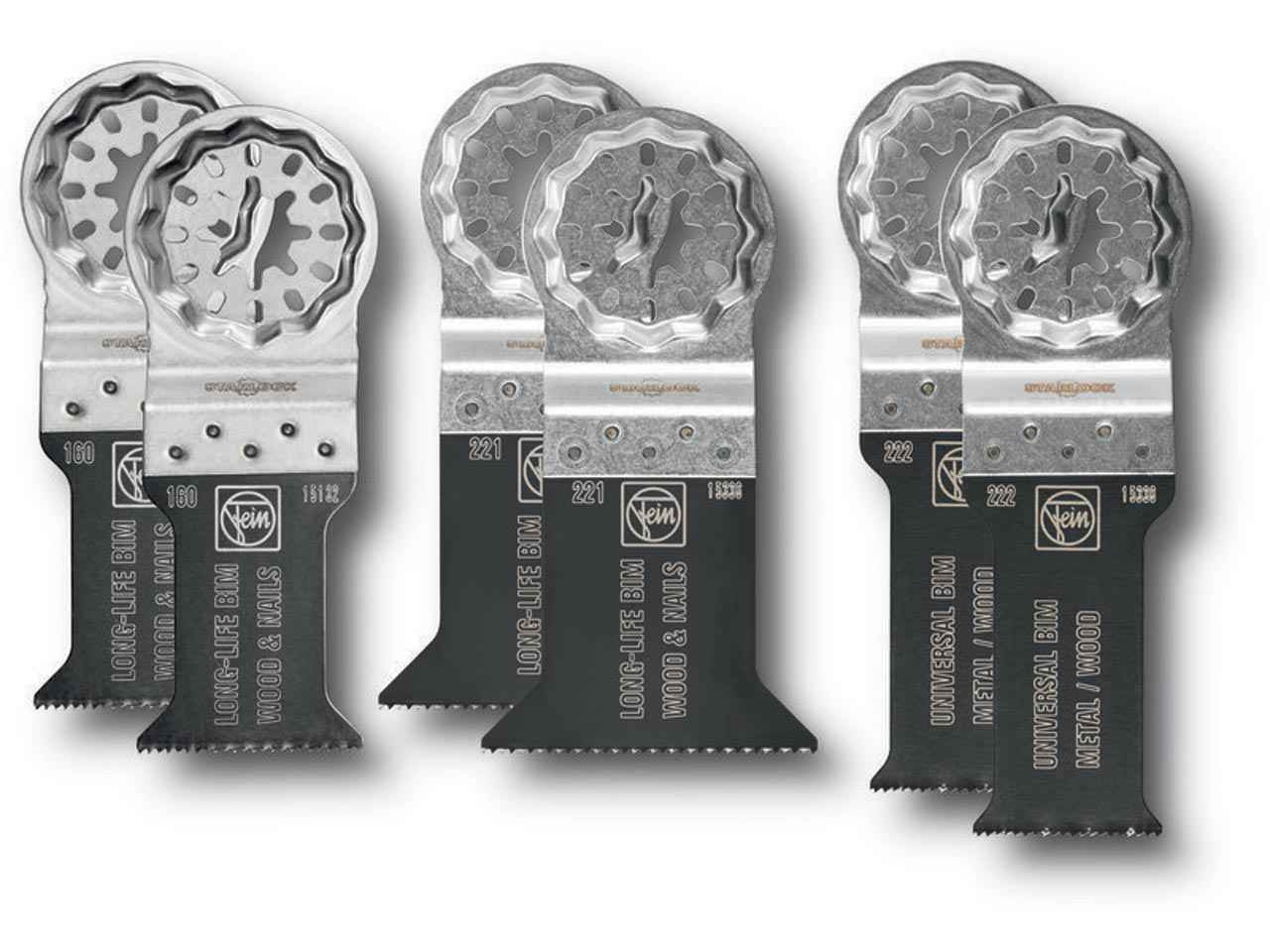 Fein Starlock 35222952300 – zestaw brzeszczotów „Best of E-Cut” do multitoola (6 szt.) drewno/metal