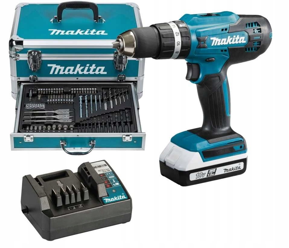 Makita HP488D009 – wiertarko-wkrętarka akumulatorowa 18V z osprzętem 70 szt. i walizką aluminiową (zestaw startowy)