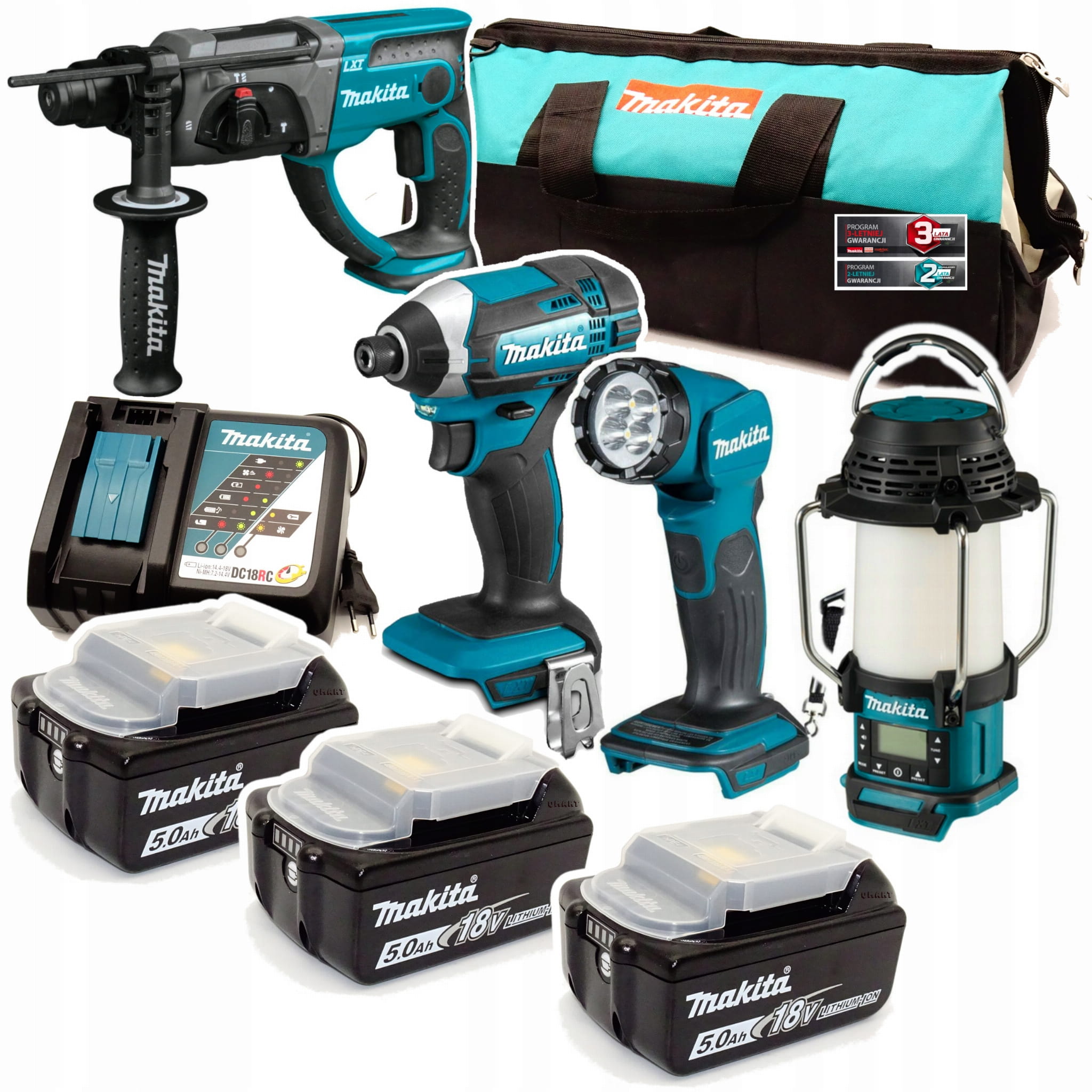 Makita DLX6068PT to praktyczny, profesjonalny zestaw z systemu 18V LXT, przygotowany do intensywnej pracy w terenie: wiercenie z udarem i podkuwanie, wkręcanie udarowe oraz pewne oświetlenie stanowiska pracy – dodatkowo z radiem/latarką. Największy atut tego kompletu to aż 3 akumulatory 5,0Ah, które zapewniają długi czas działania i wygodną rotację baterii w ciągu dnia.