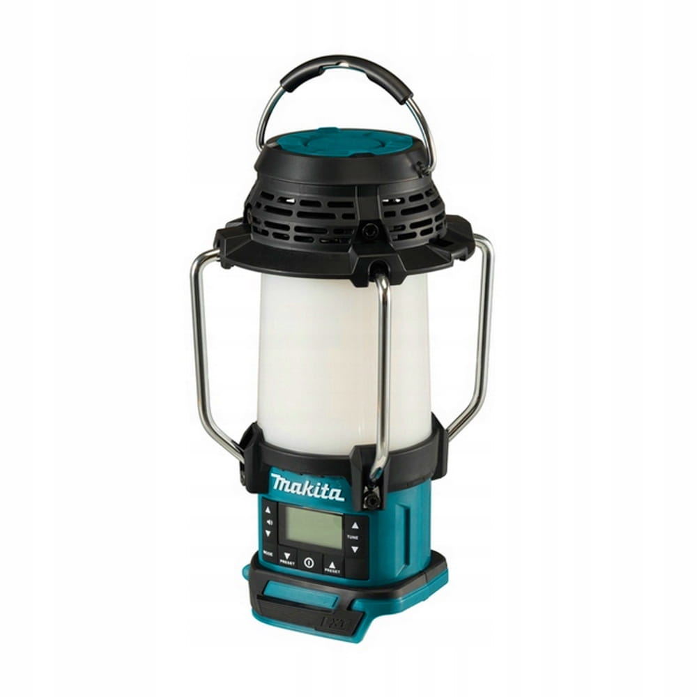 Praktyczne urządzenie 2w1: radio na budowę i dodatkowe światło. Kompatybilne z akumulatorami Makita 14,4/18V – świetne jako „centrum stanowiska”.